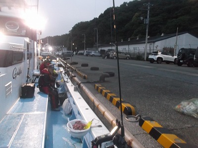 4時前に勝山港に到着。しばらくすると、受付のおばちゃん登場。宝生丸はサービス券が無いので、ネット割だけ。しかもこのご時世の値上げで12000円。これはしっかり釣って、コスパを上げなければ。(笑)仕掛けも購入し、5時前に岸払い。最初は深場のアジ狙いですが、5分ほど走ったらもうポイント。風も波もしっかり残っていて、釣りにくそう。餌は赤タン。タナは72m~65mと幅が広い。船頭さんによって違うなあ、と感じました。