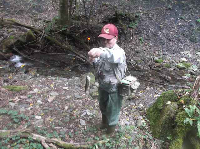 そこからは復活し、いつもの通りイワナを上げていく師匠。ラストの2時間は8匹釣ってちゃんとつ抜けしていました。せんばは型が良いのを2匹バラシ。最初のはハリス切れ。2回目はかかりが浅かったのかバラシ。水が少ないので、魚も食いが浅いし、目の前に餌があっても興味も示さないものもいました。それでも何とか6匹追加して16匹で終了。