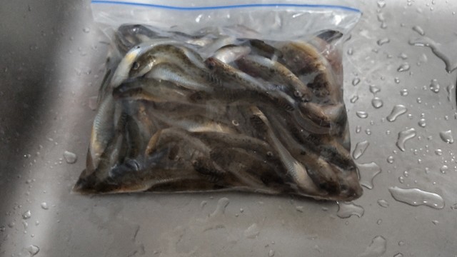 せんばもラストスパート。数匹のバラシはあったものの、ラスト30分で5、6匹追加。終了直前が一番良い時間帯、という船釣りあるあるでした。結局家内は15匹、せんばは19匹とまずまずの釣果。大小交じり、自宅で見てみると3分の1は南蛮サイズの小。3分の1は塩焼きサイズの中。そしてもう3分の1が刺身サイズ。