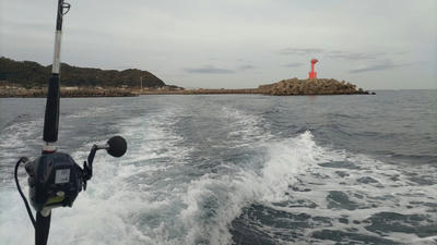 順調に天候も回復した26日、まんすりーさんに朝10時に自宅まで迎えにきてもらいます。天気は順調なのですが、せんばの電動リール用バッテリーが放置したのがまずくダウンしてしまいました。まんすりーさんの予備用バッテリーか船のを借りるか、ちょっと不安なスタートです。幸いしまや丸さんに問い合わせたところお借りすることが可能なようで、一安心。ゆっくりと南房総に向かいます。