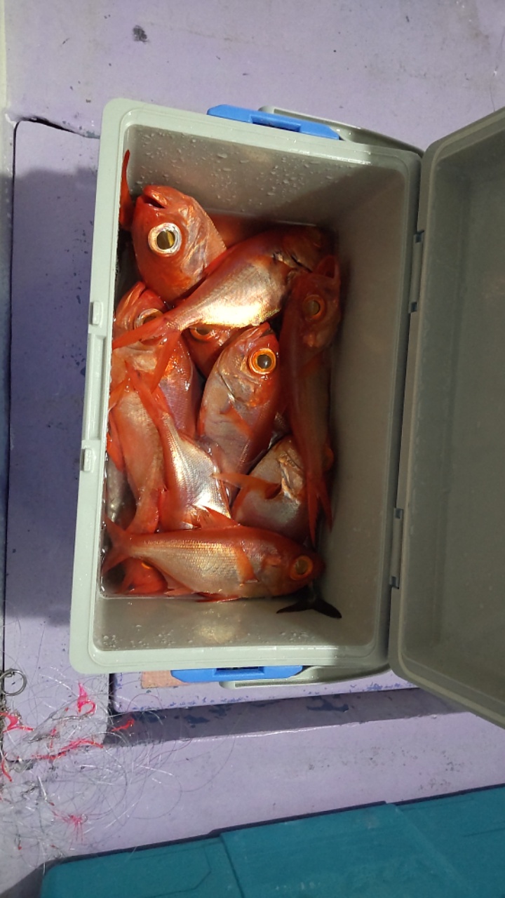 復帰したまんすりーさんはキンメよりもクロムツを次々に上げています。しかも30,40センチのデカいサイズばかり。意識的に狙っている感じです。前回お世話になった「なおや船長」のお土産を考えているようです。なおや船長はクロムツ派とか。それでも赤いキンメもポツリポツリ来ます。ただ数回に一度はお祭りがあり既に仕掛けを買い足し。厳しい戦いです。