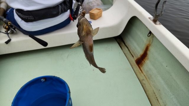 それから1時間半ほどはポイント探しをしながら釣りますが、アタリは少なく、ポツリポツリ。イシモチ釣りとは思えない感じ。それでも友人は1匹釣りあげてちょっと安心。後ろのお客さんとお祭り数回。私も一回ありましたが、どうも後ろの方は初心者さん。友人もビギナーなのでちょこちょこお祭りがあるようです。