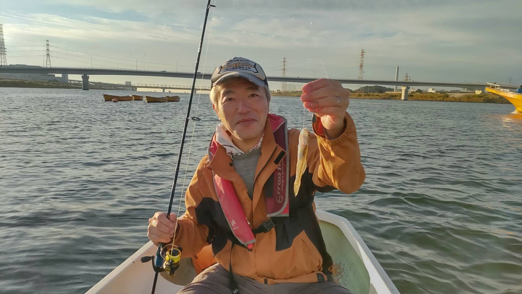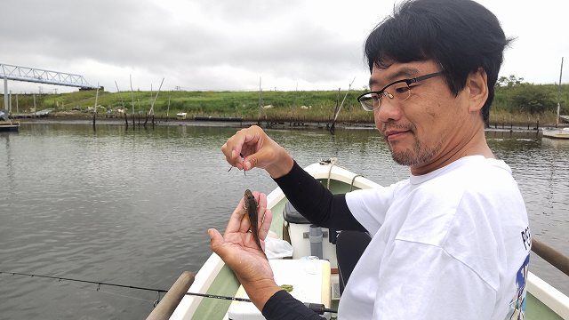 ようやくそのポイントで天ぷらサイズをゲット。やはり10センチを超えると引きが違います。これが10匹ほど揃うということなしです。それでも一つずつアタリをとりながらはぜを拾っていきます。ペースは相変わらず時速10匹。別の船頭さんが来て様子を聞きますが、どこも様子は同じようです。後半は更に河口へ向かうことにして、ボートを下流まで引いてもらいます。帰りも迎えてきてくれる、ということで安心して下流を攻められます。