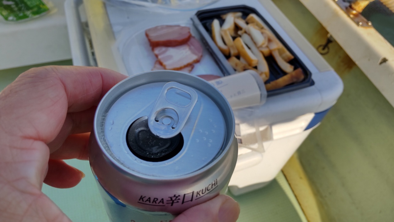 1時間ほどで10匹。時速10匹はまずまずですが、何せ型が小さい。9月の時は10匹に1匹ほど天ぷらサイズが釣れたのですが、今回は全てから揚げサイズ。まんすりーさんは数匹天ぷらサイズを釣り上げています。これは前回と逆のパターン。2時間ほどで下流へ移動します。8時を過ぎても気温はそれほど上がらず。それでも私の特権、朝からビールをしちゃいます。うーん、最高。問題は飲みだすと止まらないので、釣りに集中できないのですよねー。