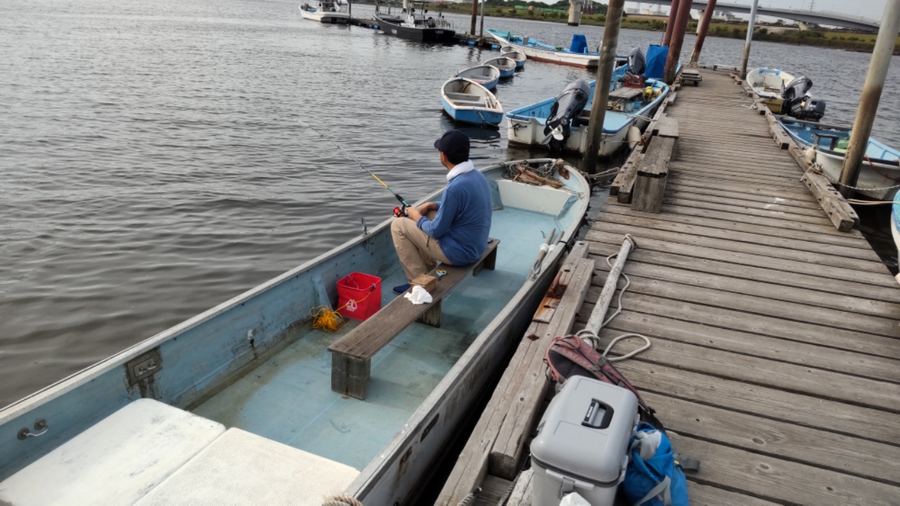 今回は電車釣行なので、荷物はコンパクトに。それでも釣りをしながら飲むアルコールと水分は多めに持参します。JRと地下鉄東西線を使って原木中山に到着したのは午前6時半前。いつもお世話になっている林遊船さんに電話するものの、出ません。まあ行ってみよう、ということで10分ほど歩いて江戸川まで行きます。ところがお店はシャッターがしまっていて慌てて桟橋まで見に行きました。話を聞くと今年は平日のはぜボートはやっていないとか。(汗)お隣のボート屋さんを紹介されました。