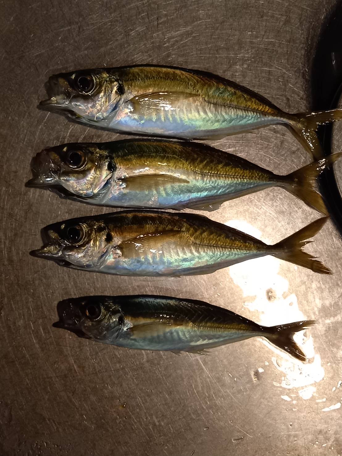 まんすりーさんにもアタリがあり、しばらく入れ食いモードに突入。ダブルや型が良いアジが立て続けに釣れます。これは早々に満足してキス釣りになるかも?って思いながら入れ食いタイムを堪能。30分ほどで入れ食いからポツポツに。(笑)やはりいつものパターンか。それでも二人ともつ抜けをした感じです。