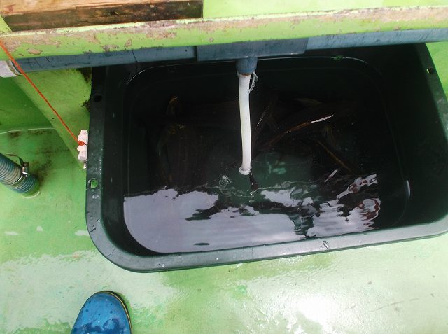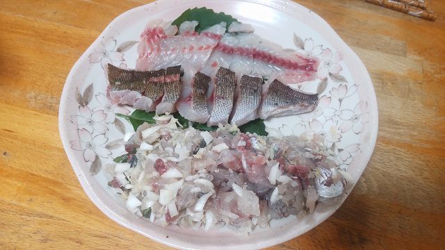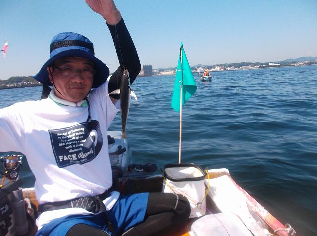 10分ほど走って今度はイサキ狙い。棚は25mとアナウンス。3m下に落としてコマセワークをしながら25mまで探る、というスタイル。鯵と同じ感じで釣りをしていたのですが、これが後ほど釣果に差が出る結果となるのでした。それでも釣り友がイサキをゲット。5分くらい経ってからせんばにもアタリ。けっこう引きます。上がってきたのはまずまずのサイズのイサキ。塩焼きに丁度良い感じです。