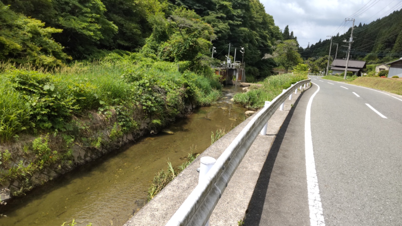 そこから20分ほど車を走らせ、師匠の故郷近くの川へ。ここはせんばも初めての川。側道を走るとやがて舗装が無くなり、砂利道に。何となく東北の山に入るイメージです。ちょっと初めてだと入りにくそうな道ですが、けっこう人は入っているとのこと。広めのスペースに車を置いて、師匠は上へ、せんばは下にそれぞれ入ります。