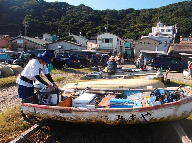 それでも片側5人でロケは反対側なので、あまり問題ないかも。岸払いは5時過ぎ。そこから30分ほど走ってまずは鯵を狙います。台風の影響で大雨が降った3日後で天気は快晴のべたなぎ。大潮ということで、流れが早そうなのだけが不安です。釣り友からこの鯵釣りではけっこうお祭りが多く、サバとかかかると大変と聞いていて、水深75mの深場の釣りということもあり緊張しながらの釣り開始です。今回はカウンター付きのリールでしたが、数字が合わないはずだからしっかり糸で確認してね、とアドバイスをもらいます。75m出したところでカウンター見ると118m!(笑)まあ、次回から118mのところで釣れば良いので楽ではありますが。