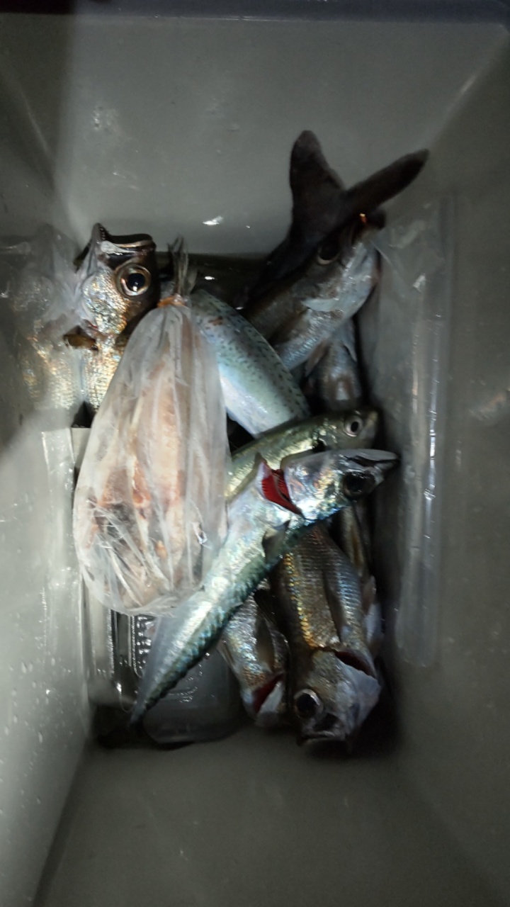 それでも19時を過ぎたころから風が強くなってきます。まさに予報通り。まんすりーさんは何者かに糸をスパッと切られて錘をロスト。船で買おうとしたものの、強風で早上がりと告げられ断念。それから10分後に終了のアナウンス。何となく不完全燃焼、という感じですが、とりあえずはクロムツとメダイを釣り上げ子供たちにプレゼントされた竿には魂が入りました。うねりもあり、帰る船ではちょっと船酔い気味でしたが、酔い止め効果もあり何とか大丈夫でした。 船から上がると、おかみさんが早上がりの時のお土産かアジの干物とジュースを差し入れてくれました。船頭さんも口数は少ないけど親切。割引券ももらったので、次回もここかな?なんてまんすりーさんと話しながら一路埼玉へ。高速を飛ばすと乙浜からは2時間かからずに帰ってこられました。結局釣果はクロムツ7匹、メダイ1匹、アジとサバを各2匹。メダイが50センチあり、正月用に刺身が出来るのでやや満足。次回は海の様子を見て、キンメを上げましょう!と約束してお別れ。今回はキンメ船デビューにお付き合いくださり、まんすりーさん、ありがとうございました。一人だと敷居がちょっと高い釣りでした。これで無事に令和6年の釣り収めも終了。来年も良い釣りが出来ますように!