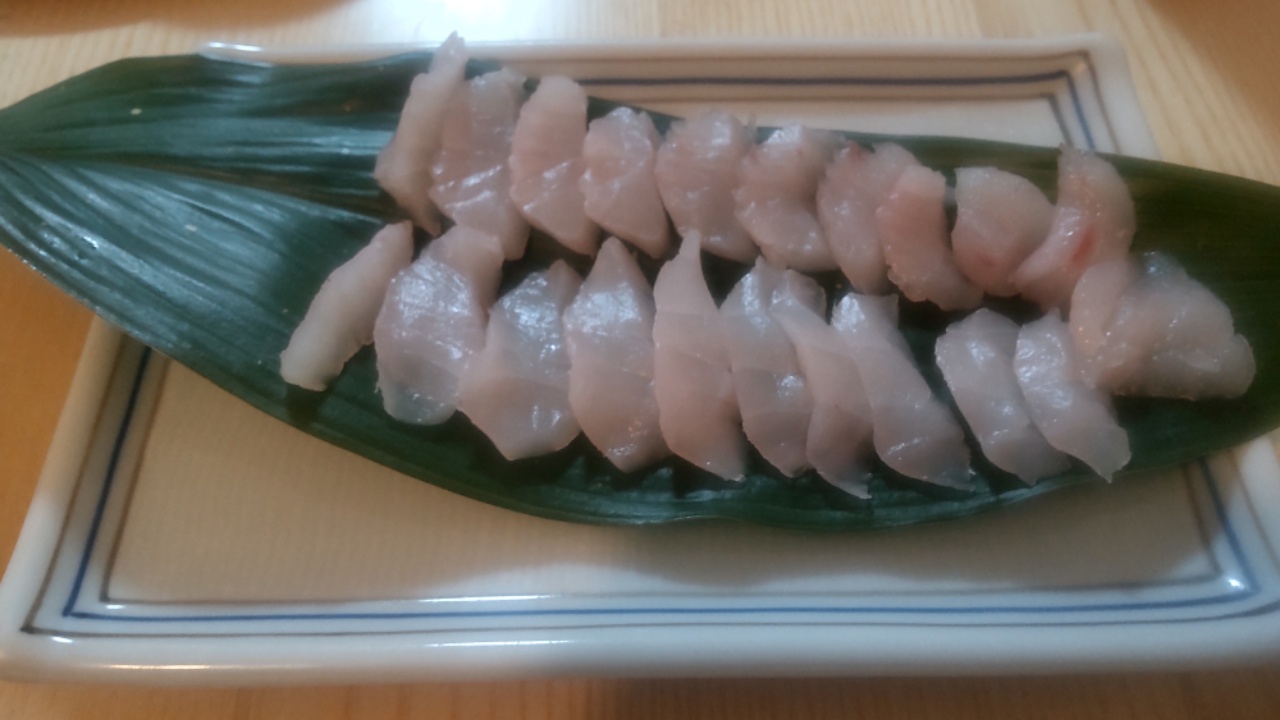 さっそく第一投。127mとのアナウンス。125mくらいで着底。そこから徐々に上げていくのか?と120mくらいのところでいきなりのアタリ。直前にはまんすりーさんにサバが掛かっていて、これもそう?と半信半疑。電動リールを使い上げますがしばらくして何か違和感。全然上がってません。ドラグが効きすぎで滑っているようです。ドラグを締めてようやく少しずつ上がってきます。どんどん重くなっている感もあり、すぐに中乗りさんが飛んできて仕掛けを回収。なんと後ろの人とお祭り&メダイ2匹にサバ。外道ですがいきなりの大物。後ろの人とメダイを1匹ずつ分けて、サバとバケツに入れます。メダイも美味しい魚とのことで、幸先良さげです。
