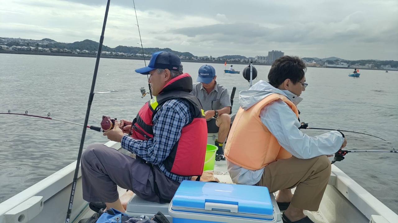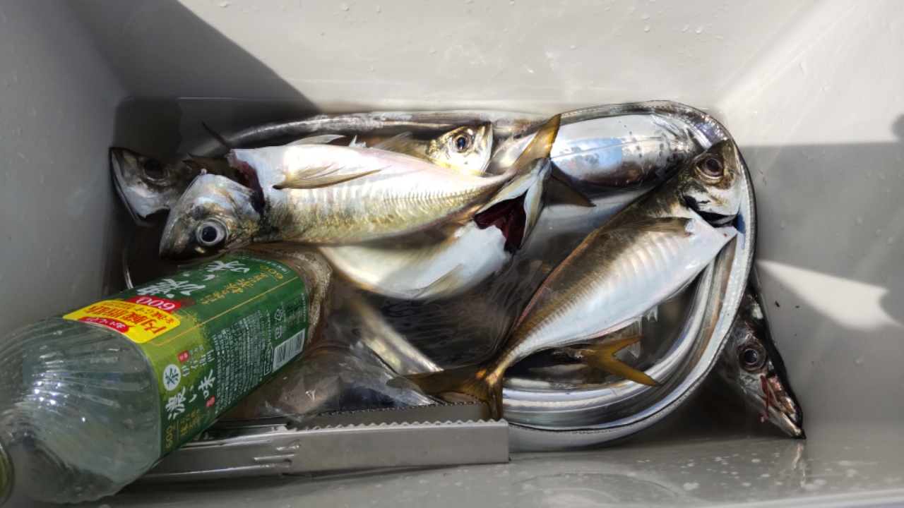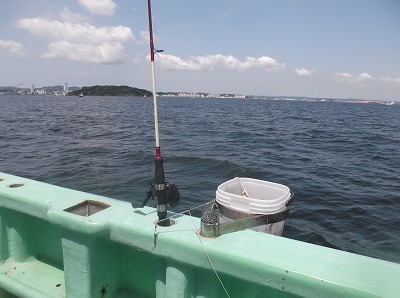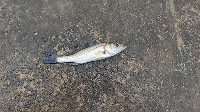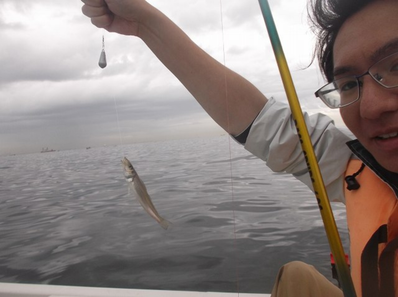 1時間ほどしたころ、チリンと鈴。一度きりなので、半信半疑でリールを巻きます。見えてきたのはちっさいセイゴ。エサ取りはこいつなのか?ポイントを15mくらいにしたり、20m前後を狙ったりと工夫するもののアタリは遠く、2時間後に大き目のアタリがあったものの、乗らず。横のおっちゃんは30分に1匹くらい釣れている感じ。