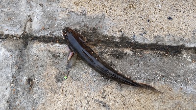 となりのおっちゃんは15時で納竿。「ここは何故か15時以降アタリが止まるんだよね。」とありがたくない情報。その後本当に1時間くらい音沙汰無しでせんばも撤収を決断。この日は1匹で終了。ハゼ天は次回の多摩川遠征に持ち越しとなりました。今年は更に厳しい鶴見川、という情報もあります。来年は復活を願っています。