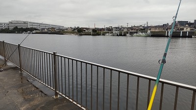 20日、天気は幸い雲りで雨は降らなさそう。満潮に向かっての上げ潮が良い釣り場とのことなので、11時から16時くらいまでが勝負です。自宅をゆっくり出て、鶴見に着いたのは10時半。餌を購入して釣り場には11時前。竿を出している地元のおっちゃんに様子を聞くと、今年は(も)今ひとつらしいです。そのおっちゃんは5本の竿を出していますが、10匹がやっとだとか。なかなかに厳しそうです。
