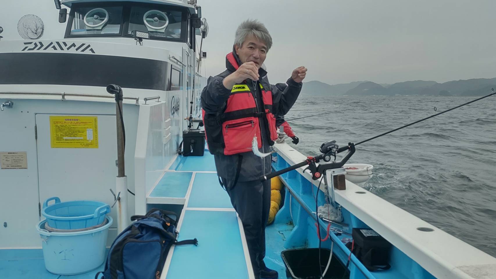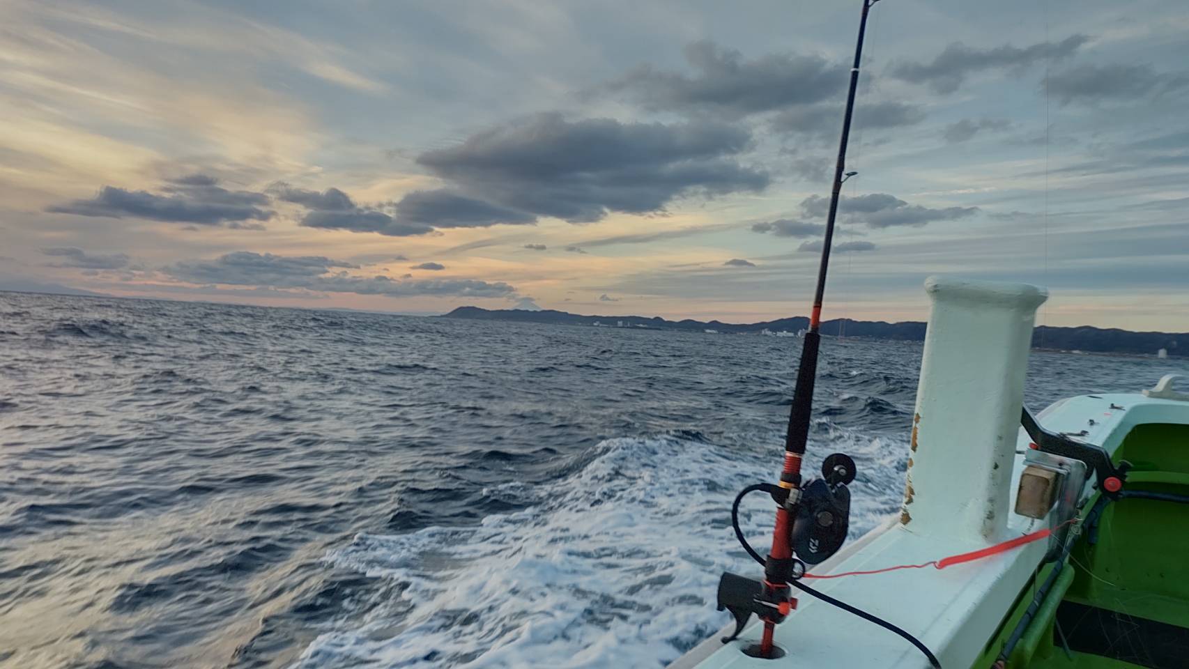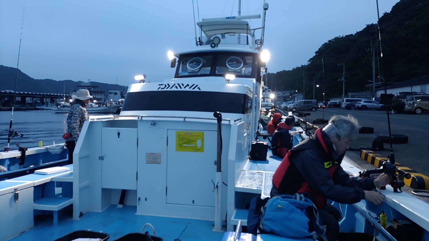4時前に勝山港に到着。しばらくすると、受付のおばちゃん登場。宝生丸はサービス券が無いので、ネット割だけ。しかもこのご時世の値上げで12000円。これはしっかり釣って、コスパを上げなければ。(笑)仕掛けも購入し、5時前に岸払い。最初は深場のアジ狙いですが、5分ほど走ったらもうポイント。風も波もしっかり残っていて、釣りにくそう。餌は赤タン。タナは72m~65mと幅が広い。船頭さんによって違うなあ、と感じました。