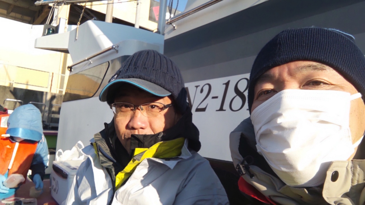 せんば家午前2時出発、というハードなスケジュール。前日に21時に就寝して少しだけ寝られました。出発してから聞いた話だと、去年までお世話になっていた「庄幸丸」さんは強風予想で出船が無くなり、お隣の「宝生丸」さんに聞いたらそちらは出る、とのことで船宿の変更をしたとのこと。予報では風も収まるので多分大丈夫でしょう。私は初めてですが、まんすりーさんは数回乗ったことがあるとか。安心して向かいます。