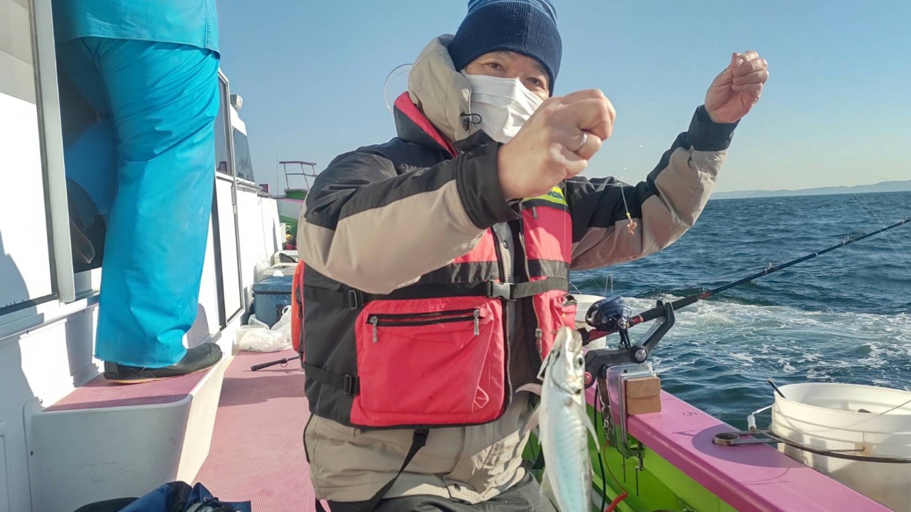 まんすりーさんはワンピッチジャークで、タナを広く探しながら釣る方法。船によってはタナを厳しく指定されるので、この船限定の手法かも。楽しみながらどんどん釣りあげます。せんばも大体調子がつかめて5,6匹釣ったあたりからダブル、トリプルを狙い少し待つ作戦。ところがたまにダブルにもなりますが、半分くらいはせっかく食ってもダブルを待つうちにはずれてしまったり、巻いている途中でバラシたりが続いてしまいます。1時間半ほどやってみましたが、1匹ずつ確実に釣るまんすりーさんの方が数が出ています。