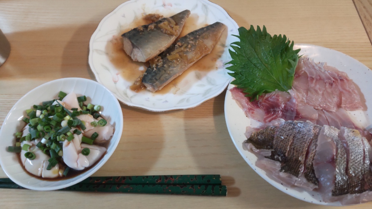 それでも6時半ころまでかかってしまいました。この日はアジのタタキとイサキの小さいやつを塩焼きに。翌日にはイサキの刺身とサバの味噌煮。連日の美味しいお魚三昧の1週間になりそうです。今年もしっかりと結果を出せたイサキ釣り。まんすりーさん、お世話になりました!次の遠征は冬のキンメ、かな?