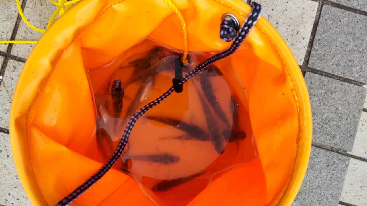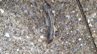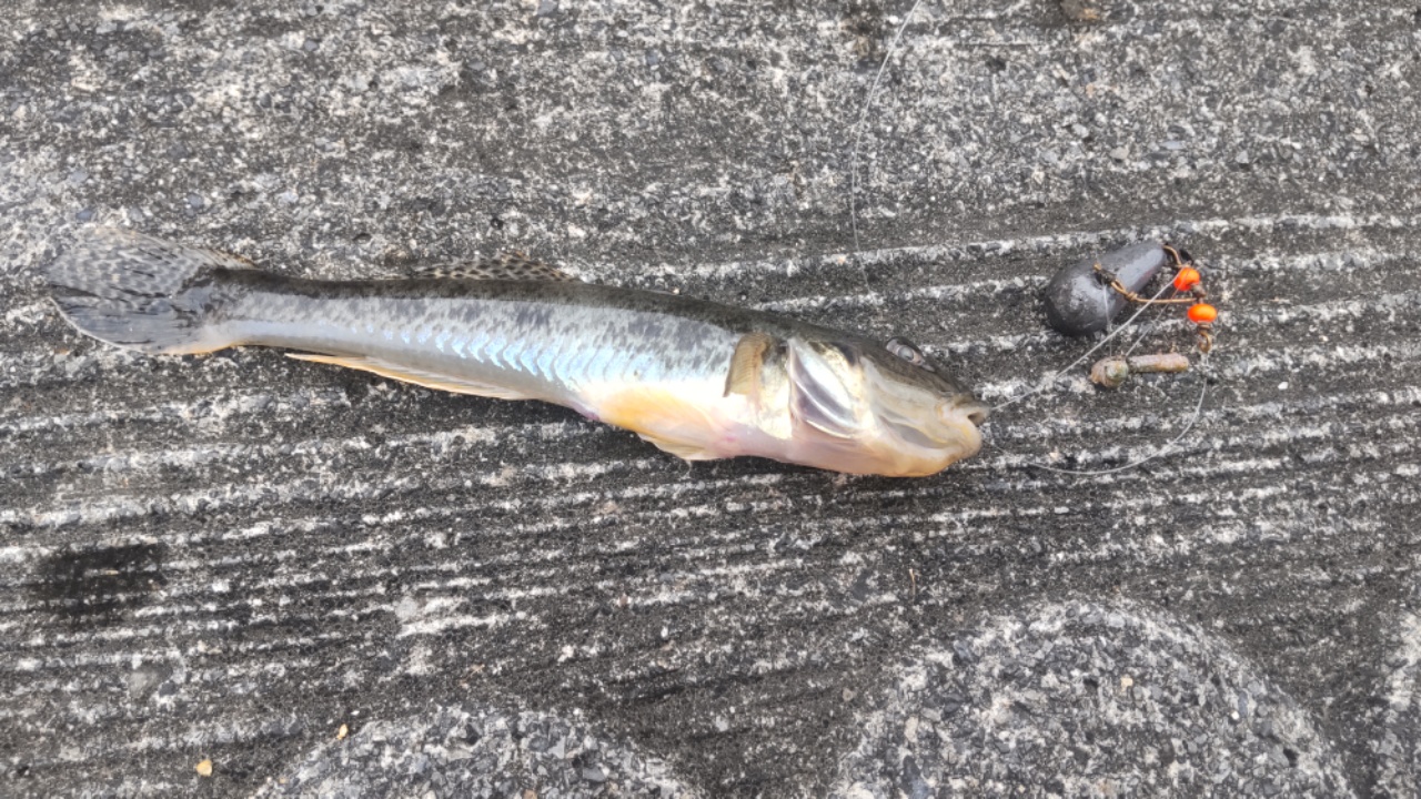 予想外で、傘ももっていないため、更に100mほど下流の鉄橋の下に避難。雨が止むまでそこで竿を出します。おまけに寒くてトイレに行きたくなって、小ぶりになってからスーパーマーケットへ。1時間半ほど経過しており時間は3時前でした。トイレから戻ると雨も上がっており、また50mほど上流へ。そこで再び40mラインから責めます。と、3分くらい待っているとブルブルとアタリ。しっかり乗って上がってきたのは18センチのジャンボハゼ。釣れると必ずこのサイズなのが嬉しいです。ここから1時間ほどは反応がめちゃくちゃ増えます。一投必ずアタリがあります。コンコン、と小さいアタリの後持っていくやつあり、いきなり大きなアタリで持っていくものあり、小さな変化に試しに合わせて乗ったのもあり、4時までの1時間で5匹のはぜを釣りました。3,4回は食い逃げされたので、楽しい時間になりました。